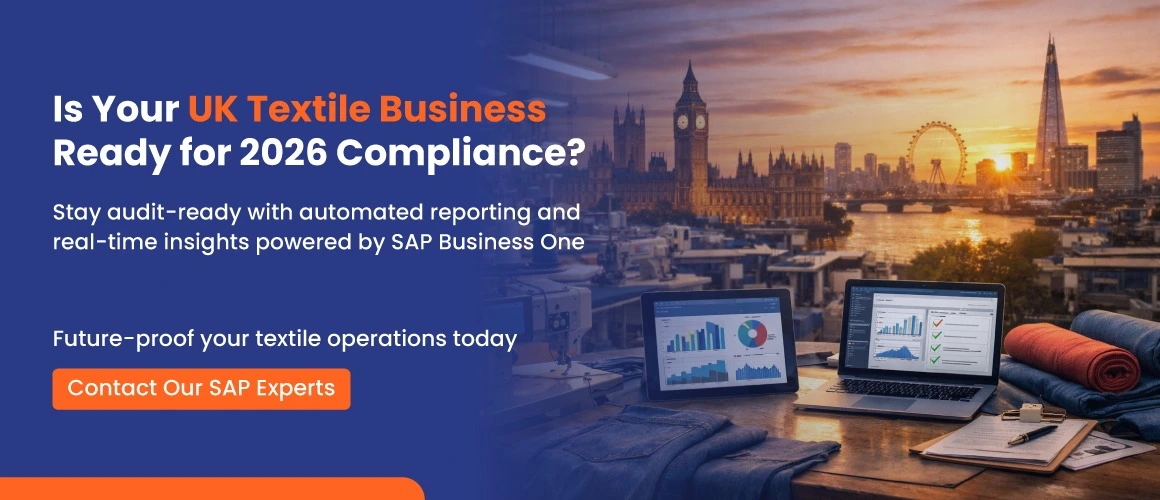 ERP solutions such as SAP Business One help textile businesses centralise operational data, improve supply chain visibility, and maintain organised compliance documentation.