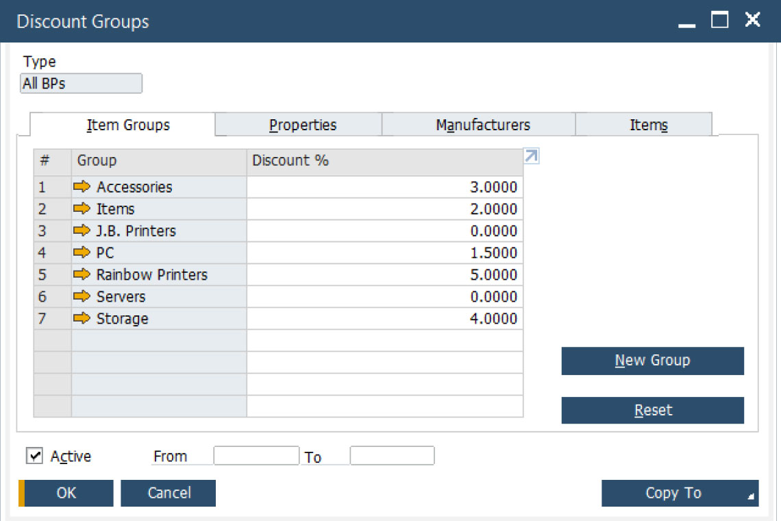SAP Business One lets you define special prices for your customers and vendors in addition to the standard price lists. You can define these special prices for specific business partners or by discount groups according to item groups, properties, manufacturers, or items.